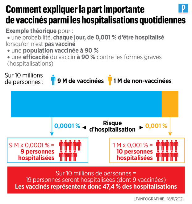 À ce moment, la France est à \(90\%\) vaccinée. On pourra considérer qu’il y a 6000 hospitalisations sur la population de 60 millions d’habitants.